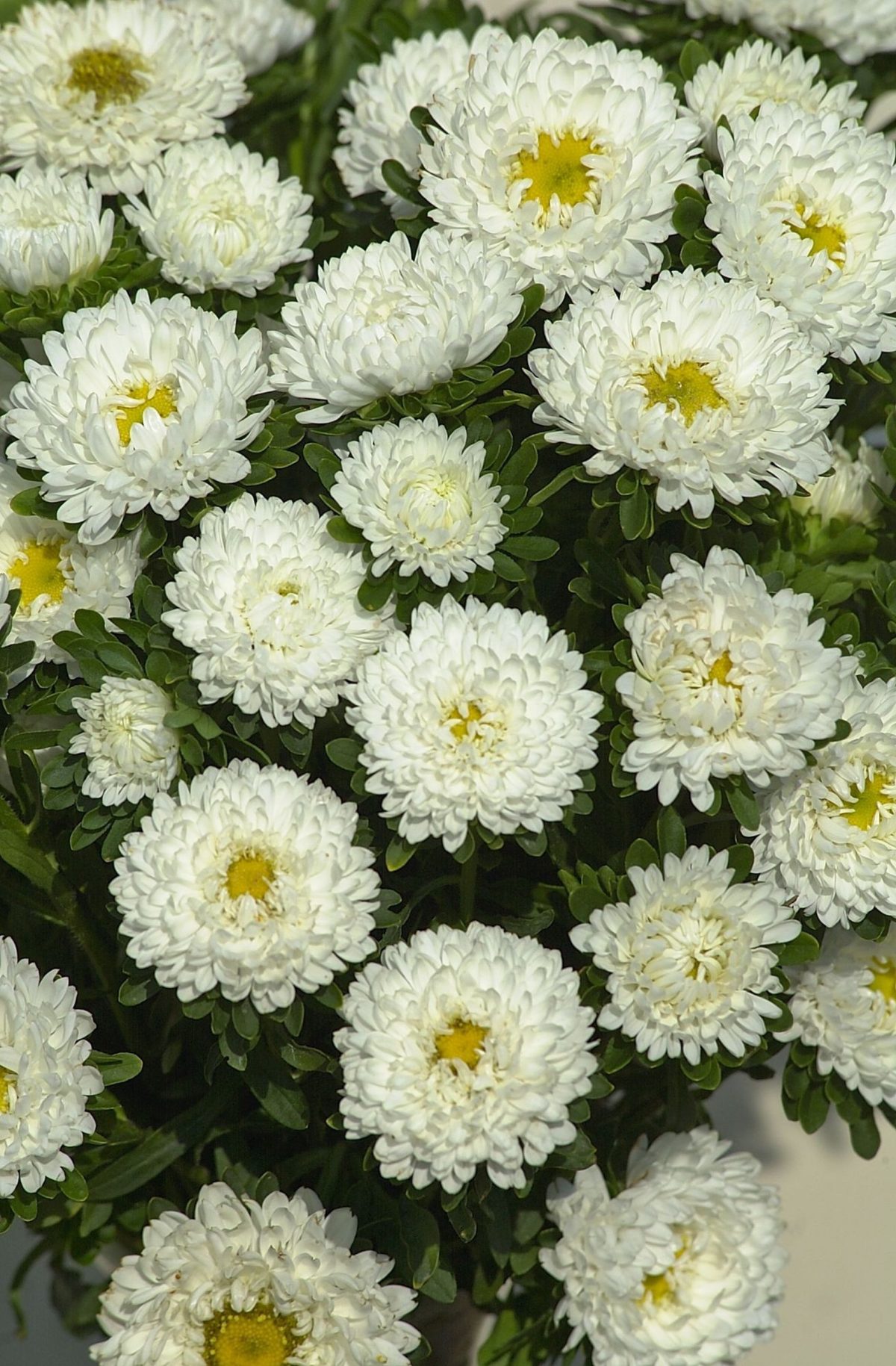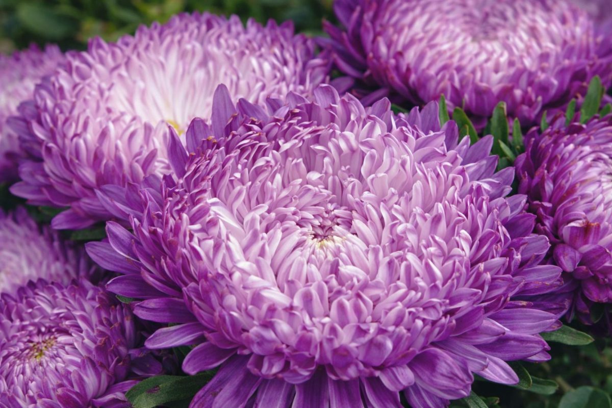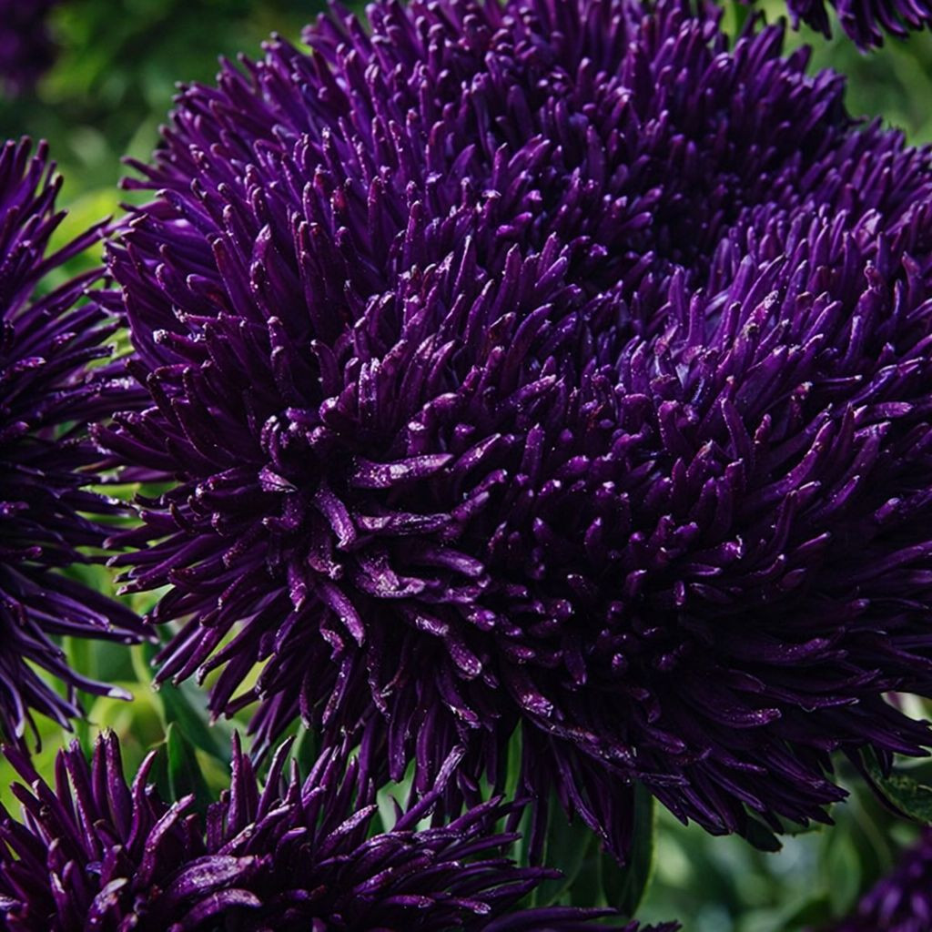 Золотая середина между плотностью и декоративностью. Тонкие лепестки создают пышное, воздушное соцветие, которое тем не менее держит форму. Хризантемовидные астры устойчивы к дождю: влага не задерживается между лепестками, и цветки не загнивают.