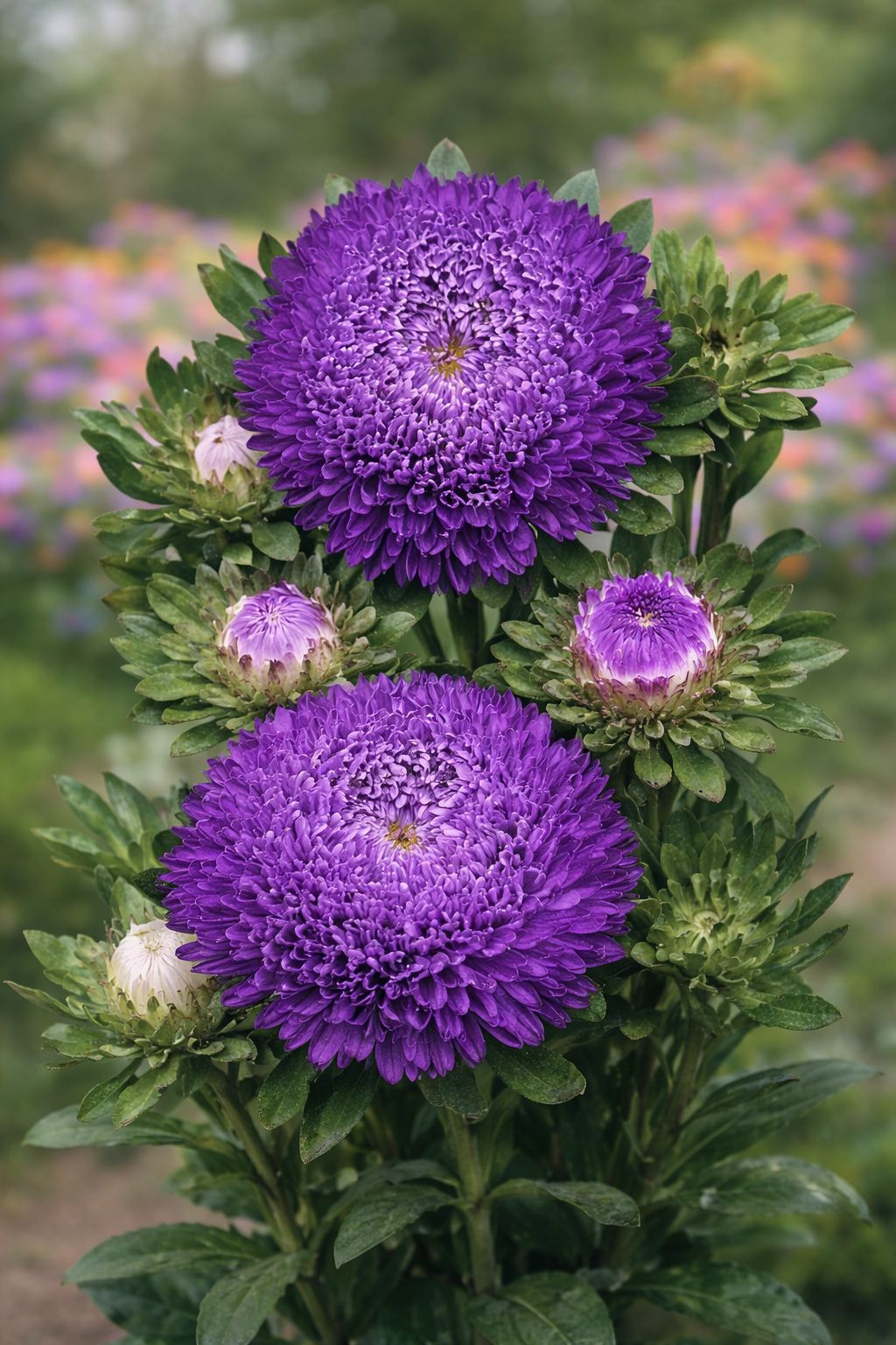 Соцветия плотные, пионовидные, не рыхлятся даже в неблагоприятных условиях. Гибрид стоит дороже сортовых серий, но для тех, кто выращивает астры на продажу или просто хочет гарантированного результата, это оправданный выбор.