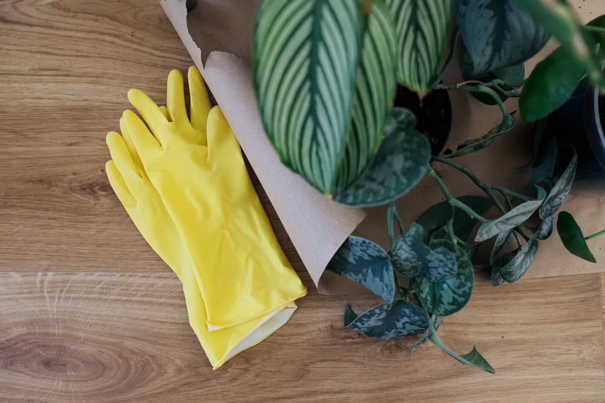 Для комнатных растений не используют такую химию, которая требует специальной защитной одежды. Но это не значит, что меры по безопасности соблюдать не нужно. Прежде чем браться за обработку растений, стоит одеть перчатки и переодеться в рабочую одежду, которую можно будет сразу отправить в стирку (учитывая, что некоторые препараты способны оставлять необратимые следы на текстиле).