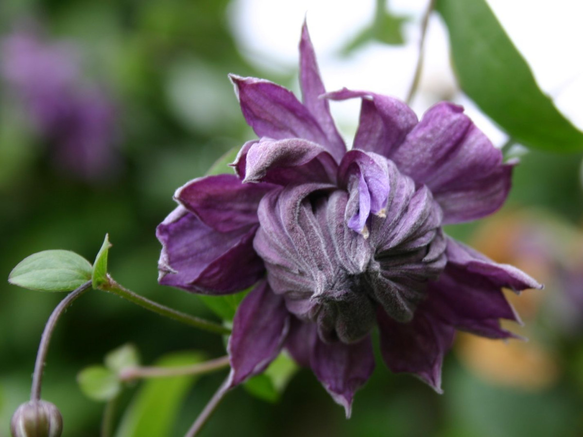 При весеннем цветении лепестки расположены в несколько рядов – до восьми снаружи и до тридцати внутри. Будто двухметровую лиану украсили огромные пушистые помпоны. А к осени их сменяют более простые, но не менее восхитительно окрашенные цветы, развивающиеся на побегах текущего года.