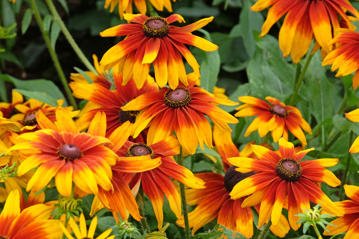 Рудбекия — это жизнерадостные желтые ромашки с темной серединкой, которые цветут до самых заморозков и не теряют декоративности. Многолетник, который при подзимнем посеве дает более мощные кусты и зацветает иногда уже в первый год, в конце лета. Совершенно неубиваемое растение, которое растет практически везде и не требует вообще никакого ухода — воткнул и забыл.