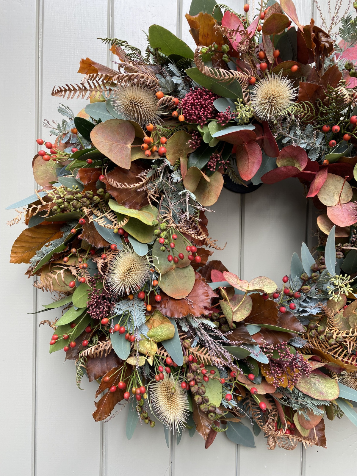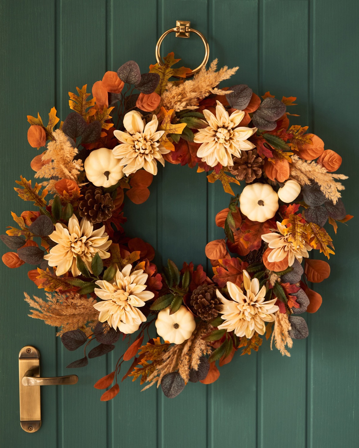 Это просто невероятно красиво — у меня нет слов! Хотя, погодите, парочку все-таки найду. Из всевозможных декоративных венков, осенние я люблю больше всего. Благодаря преимущественно теплым цветам они смотрятся очень уютно. Помимо невероятной красоты они очень просты в сборке.