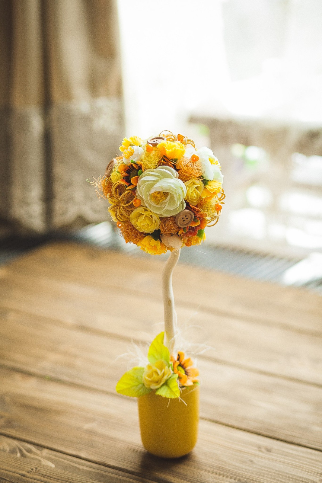 Топиарий тоже может стать отличным вариантом для поделки. А после выставки в садике или школе, вы можете использовать его в качестве элемента декора дома.