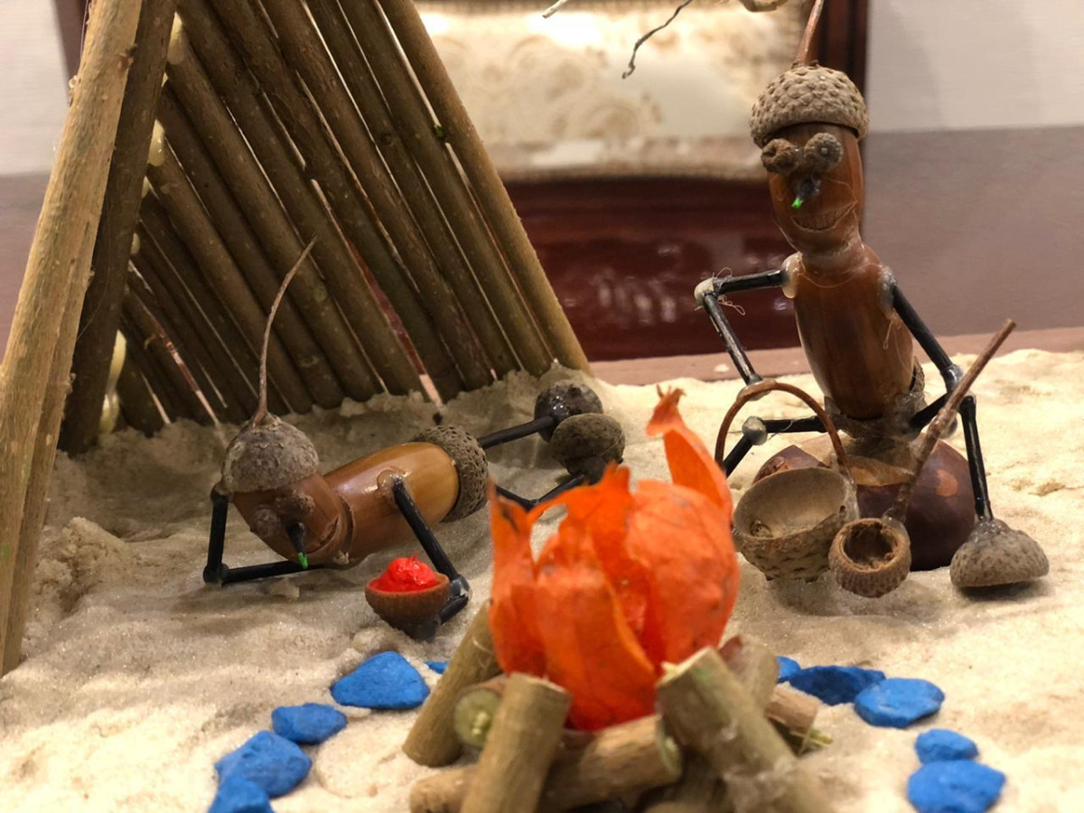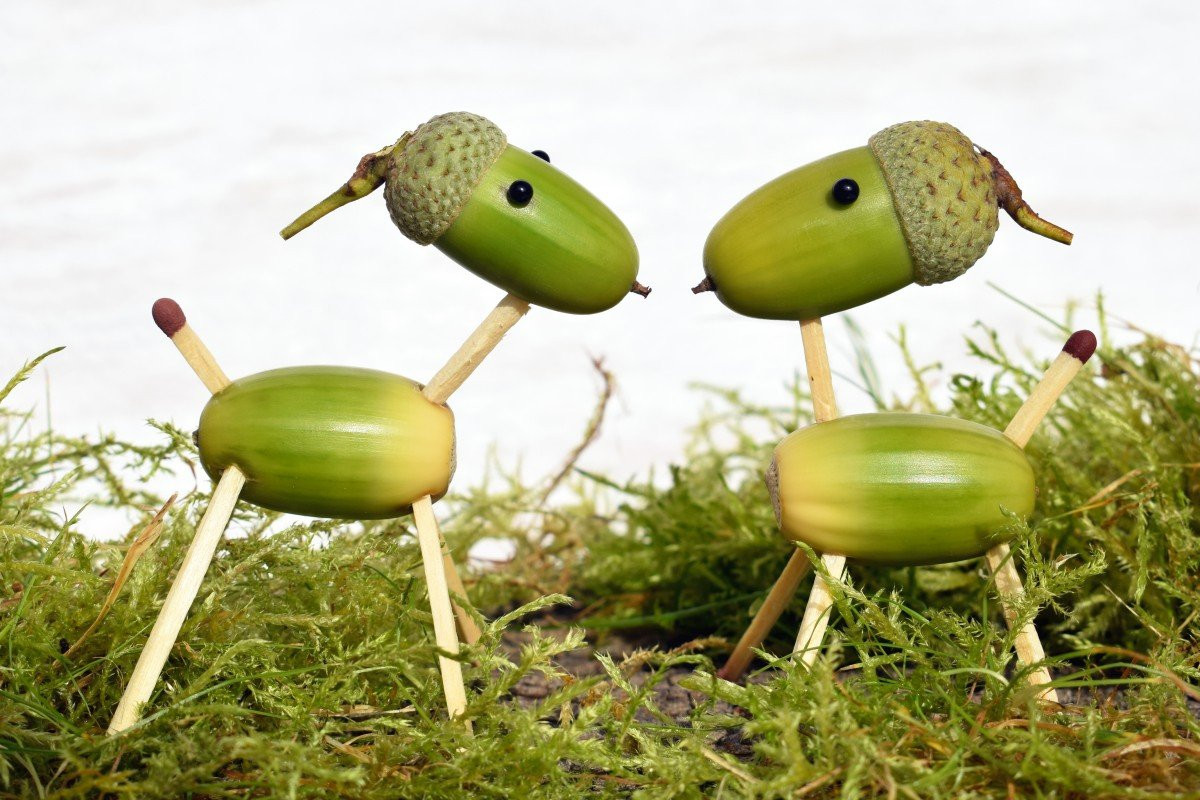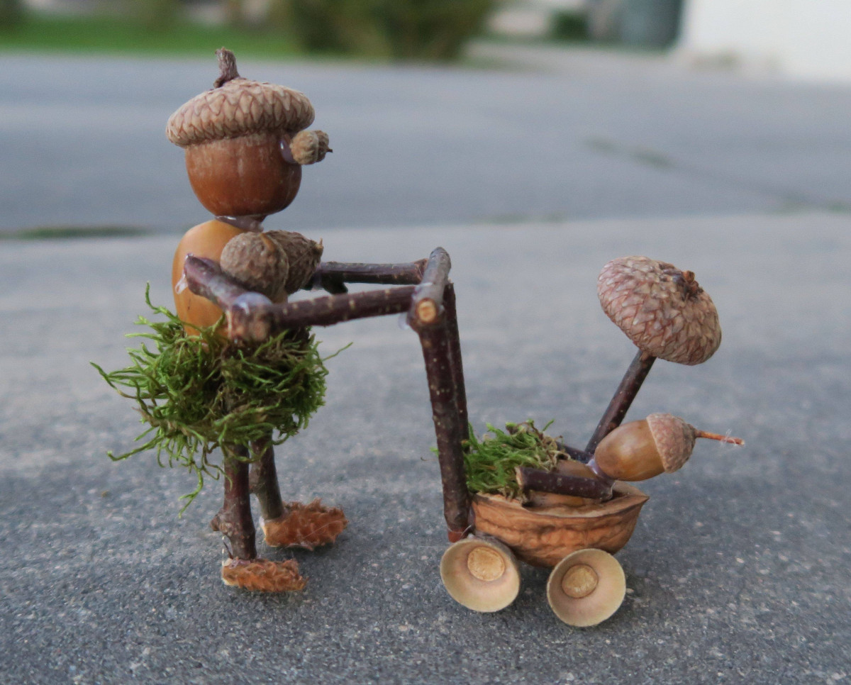 Когда я была маленькой, мы с папой делали композиции из желудевых человечков. К сожалению, фотографий наших шедевров нет, но ниже представленные варианты ничуть не хуже! Придумайте сюжет и имена своим человечкам — так гораздо интереснее!