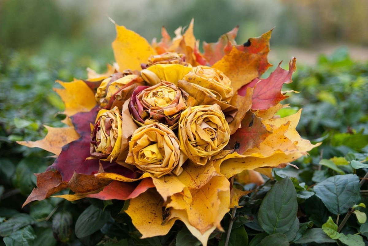 Очень эффектно смотрятся букеты из осенних листьев! Почувствуйте себя флористом и соберите свой авторский, царский букет. Такую поделку можно не только ребенку в школу, но и в качестве букета-комплимента или подарка. Все зависит от ваших творческих навыков!