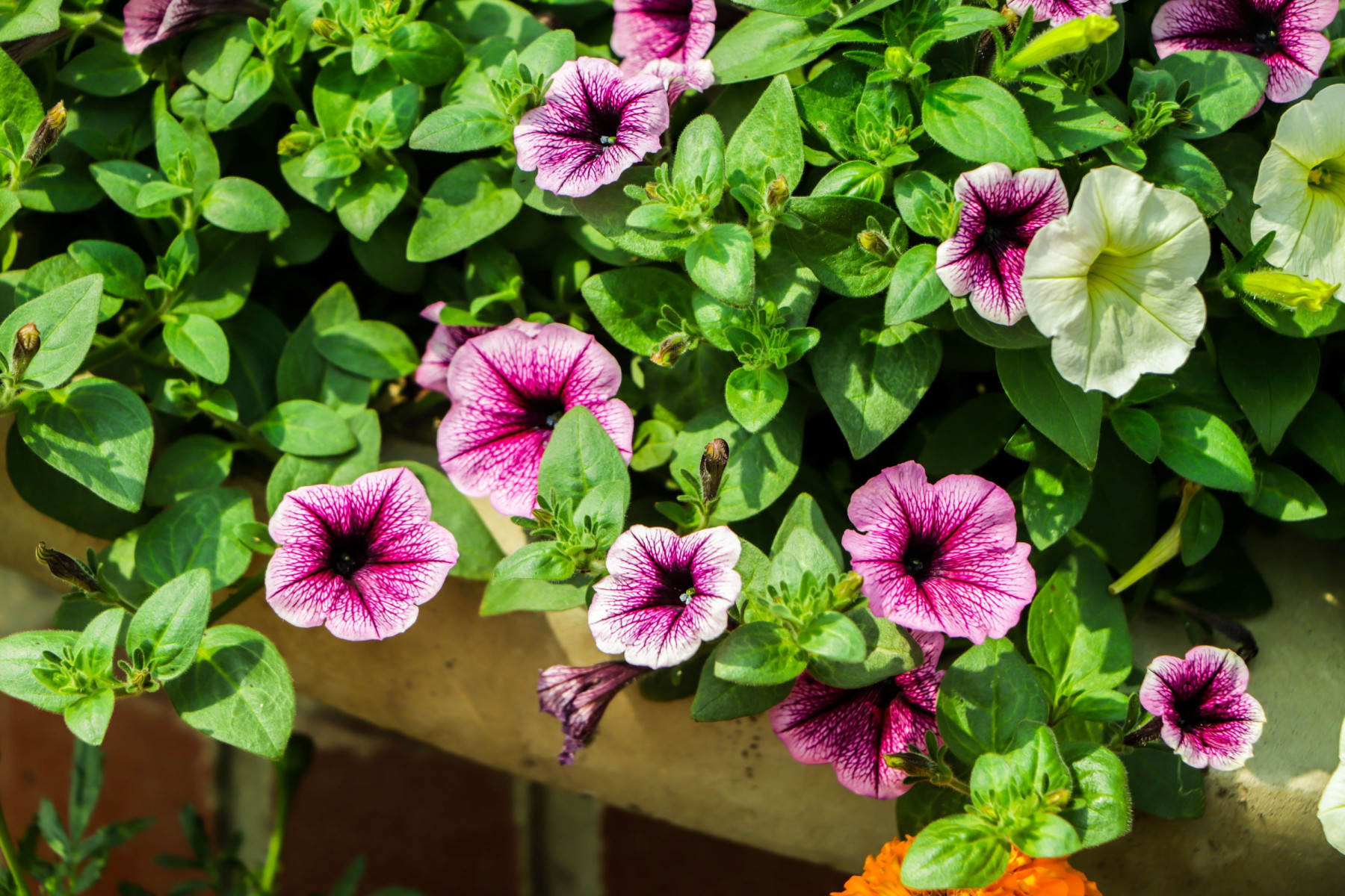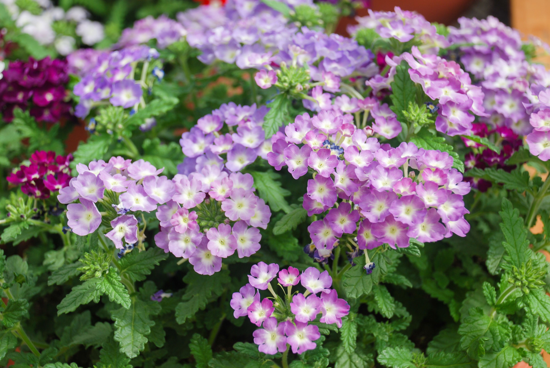 Вербена (ампельные сорта) – яркая, выносливая, с шапками мелких цветков красного, фиолетового, розового, белого оттенков. В отличие от обычной кустовой, ампельная вербена хорошо ветвится и свисает, быстро заполняя объём. И что важно, она отлично переносит засуху. Если забыли полить пару дней, она не погибнет и даже не особо пострадает. Просто отряхнётся и продолжит цвести дальше.