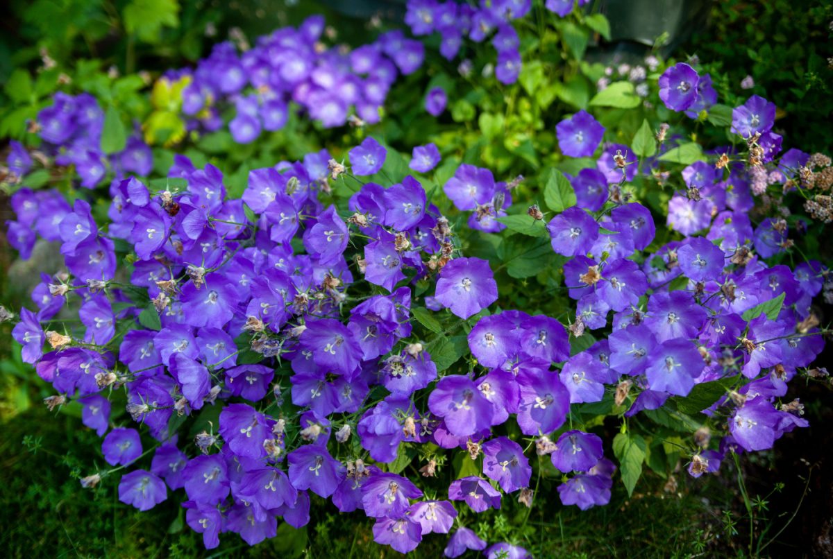- «Блю Клипс» (Campanula carpatica ‘Blue Clips’) с синими цветками