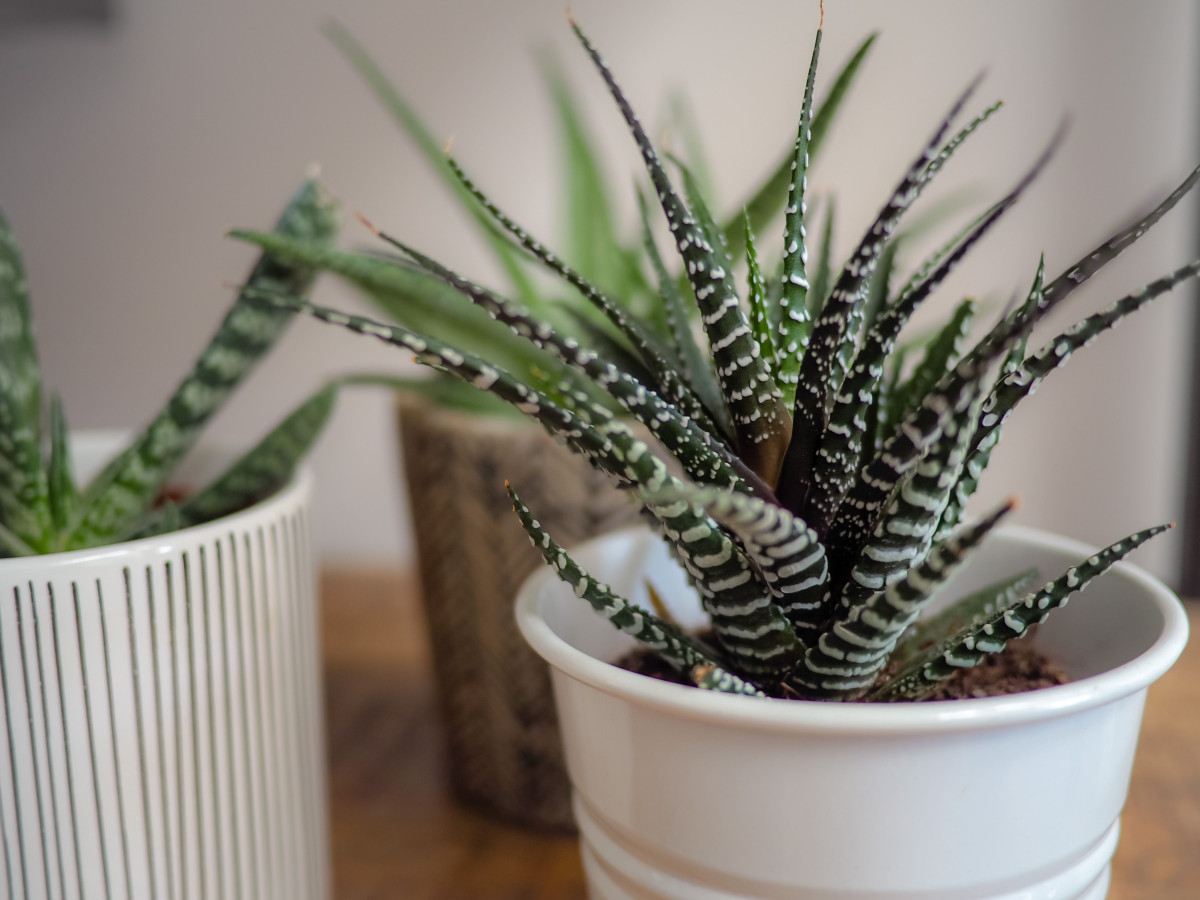 Хавортия выглядит стильно и графично — у неё плотные мясистые листья, собранные в розетку, часто с белыми полосками или точками. Она не создаёт мусора, потому что листья не опадают. Идеальное растение для минималистов.