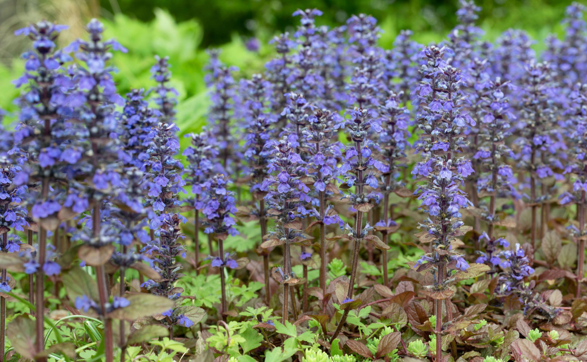Плотный покров из живучки сдерживает рост сорных трав. Аюга – растение, не требующее особого ухода, прекрасно себя чувствует как на открытом солнце, так и в условиях рассеянного света.