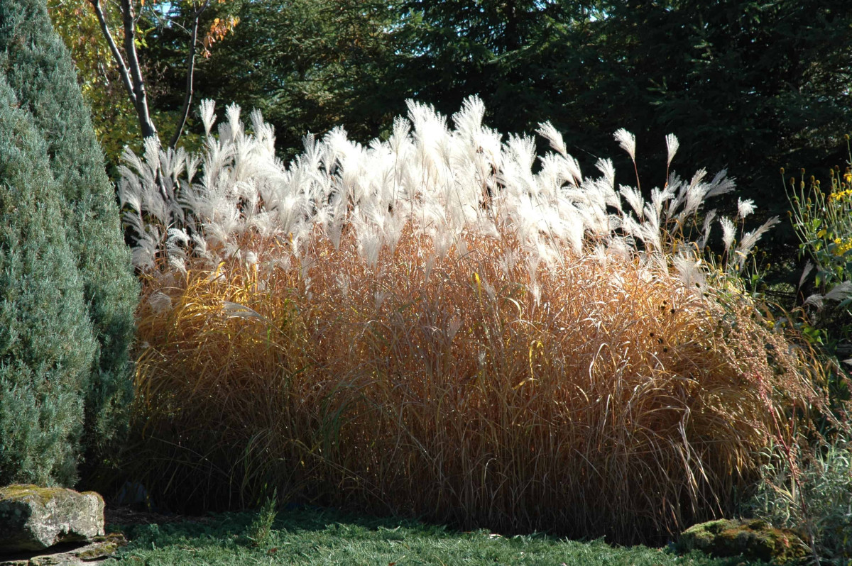 Мискантус сахароцветковый (Мiscanthus sacchariflorus) более выносливый, чем теплолюбивый мискантус китайский. Его зона морозостойкости 4, до -34,4 ºС. Эта эффектная высокая трава с кремовыми соцветиями-метелками, хотя и привлекательна как элемент ландшафтного дизайна, представляет угрозу для сада. Корни многолетника очень быстро захватят участок, особенно если вы посадите его возле водоема, поскольку растение обожает влажность.