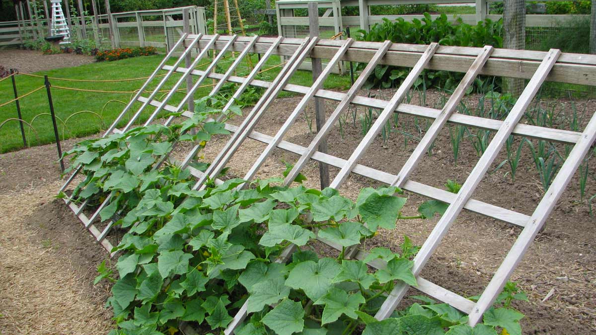 Многие даже не задумываются, что кабачки легко растут вертикально с соответствующими опорами для растений и шпалерами. Если регулярно собирать плоды небольшими, то они не будут ломать лозы.