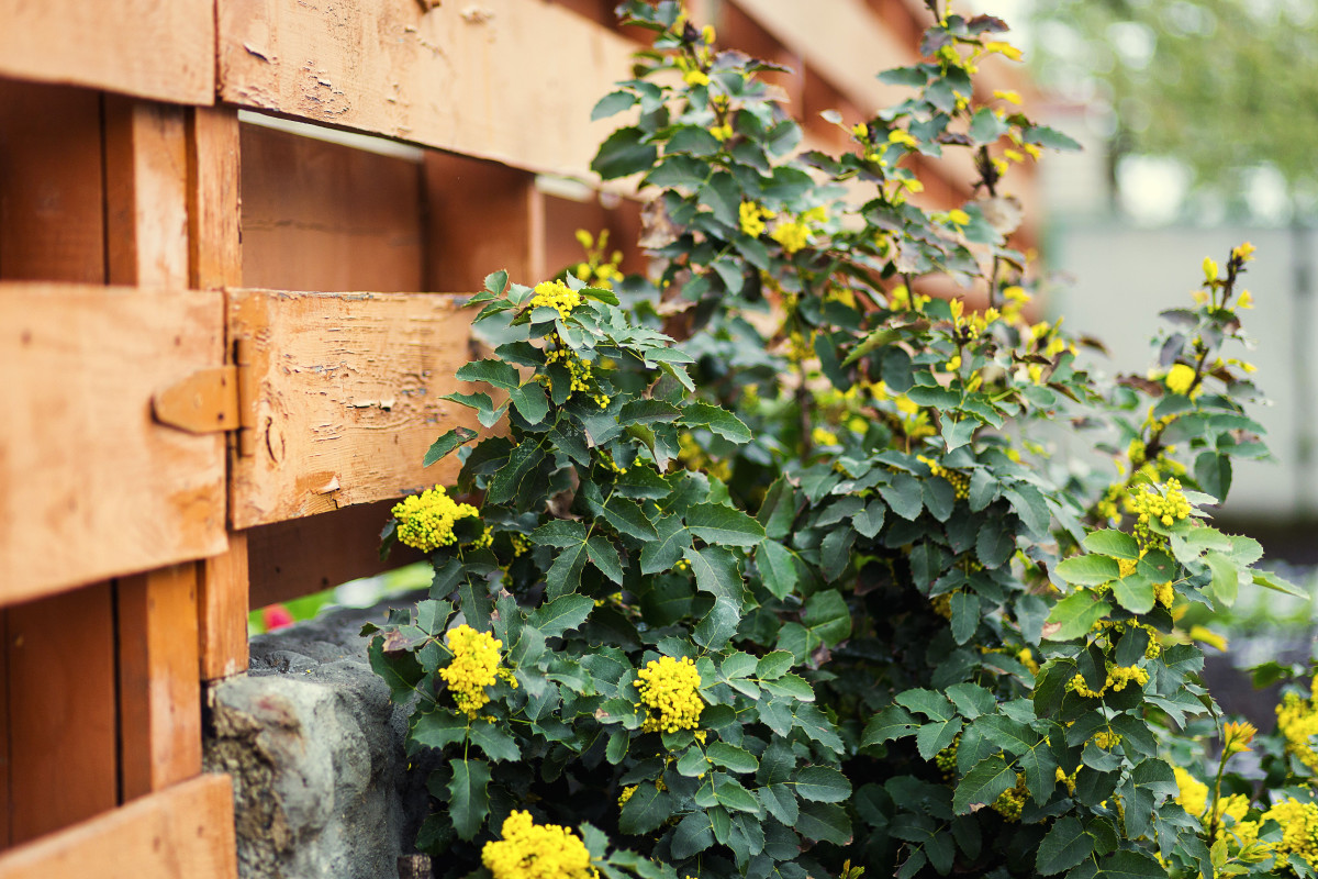 Вечнозеленый кустарник с кожистыми блестящими листьями, напоминающими падуб. Весной появляются ароматные желтые соцветия, летом созревают синие съедобные ягоды, похожие на мелкий виноград. Осенью и зимой листва приобретает бронзово-пурпурные оттенки. Отличный выбор для тенистых мест, где мало что растет. Хороша в подлеске, у северных стен, в миксбордерах. Теневынослива, предпочитает влажные плодородные почвы. Морозостойка, но в бесснежные зимы листья могут повреждаться. Практически не требует ухода, разве что санитарная обрезка весной.
