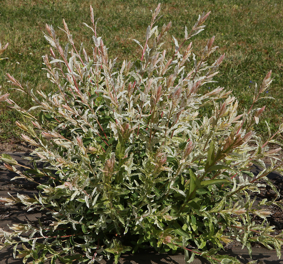 Компактная ива с изящными поникающими побегами и бело-зелено-розовой пестрой листвой. Молодые листья особенно яркие, с розовым оттенком. Весной на голых ветках появляются сережки. Зимой декоративны красноватые молодые побеги. Эффектный акцент для небольших садов, хорошо смотрится у воды, в контейнерах, штамбовой форме. Предпочитает солнечные влажные места. Для сохранения яркой окраски и компактности требует ежегодной сильной обрезки ранней весной. Быстро восстанавливается, дает яркие молодые побеги. Зимостойкость хорошая.