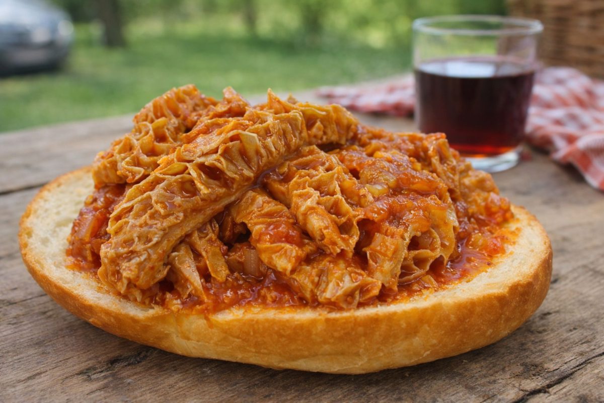Его долго варят, потом тушат в томатном соусе с травами. Он становится мягким, но текстура остаётся странной: скользкая, ноздреватая, немного резиновая. На вкус вполне нормально, как тушёное мясо, но вид «тряпки» в булке выводит из равновесия.