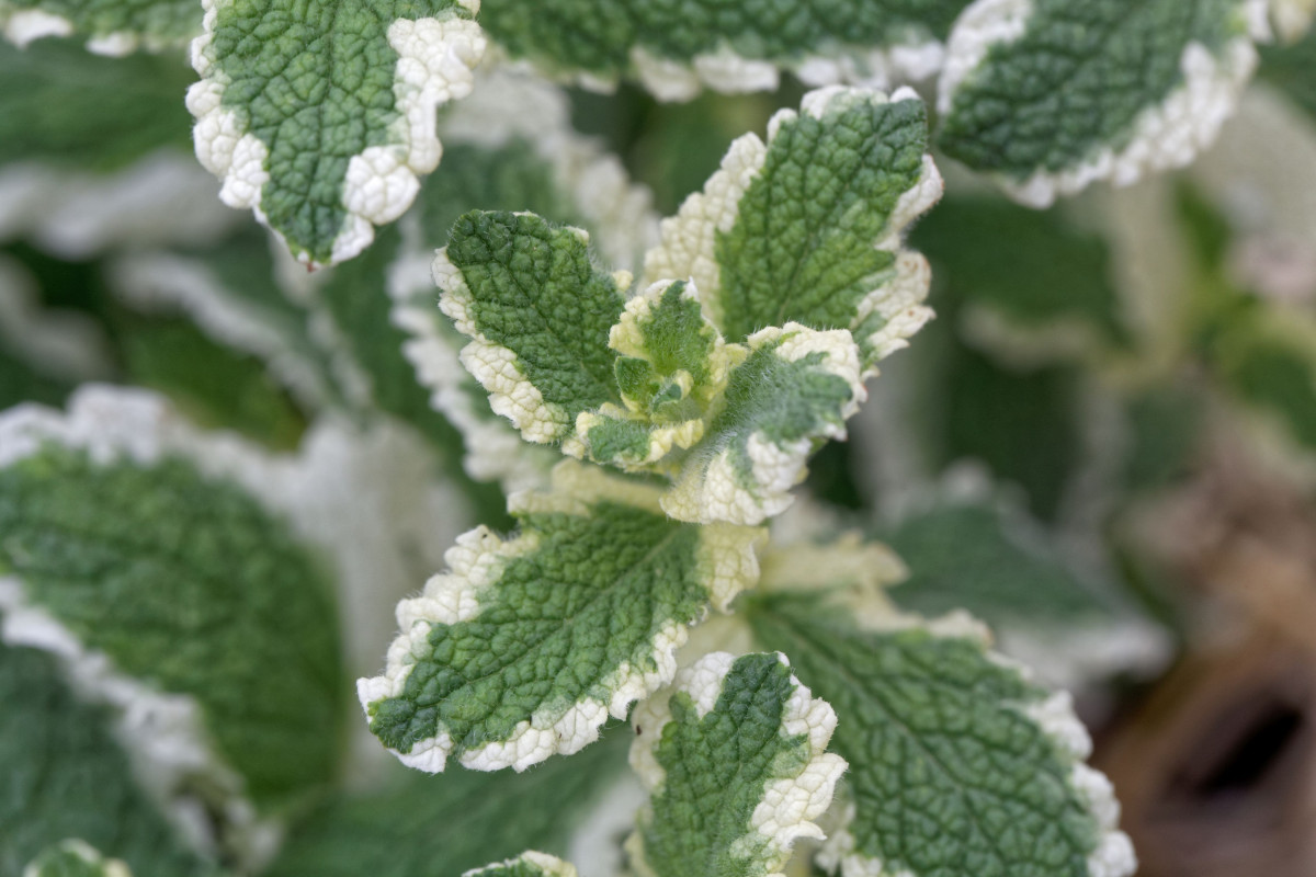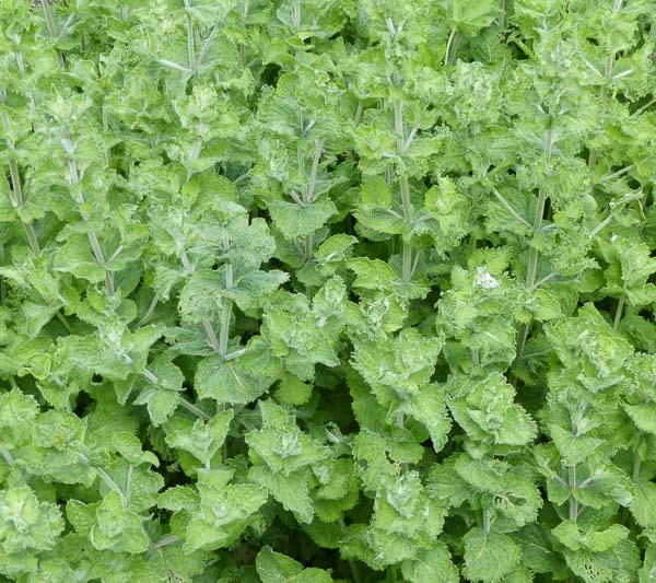Мята яблочная (Mentha rotundifolia) — гибрид мяты душистой (Mentha suaveolens) и мяты длиннолистной, симпатичный кустик с округлыми листьями, аромат свеже-мятно-фруктовый. Альтернативное название — кондитерская мята — говорит само за себя.