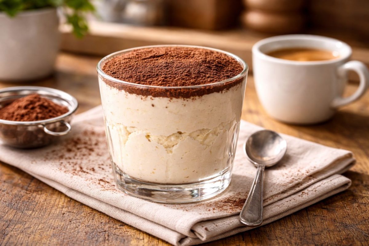 Гениальная обманка: десерт пахнет кофейней и выглядит как итальянская классика, но состоит из обычного творога. Плотный мягкий творог берёт на себя роль маскарпоне, а крепкий кофе и горький какао-порошок создают тот самый кофейно-шоколадный вкус тирамису.