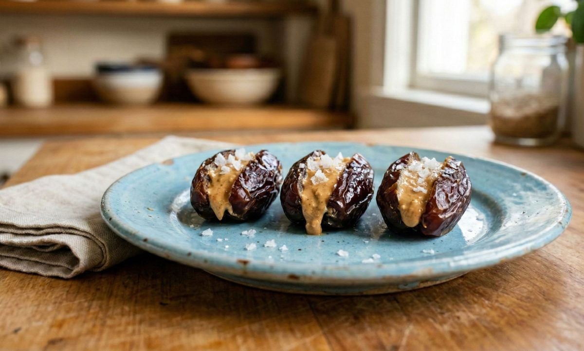 Это идеальная замена магазинному сникерсу, когда хочется плотной, тягучей сладости к чаю. Мясистый финик сам по себе как мягкая карамель, а жирная арахисовая паста внутри даёт сытность. Главный секрет здесь – крупная соль, которая взрывается на языке и делает вкус глубоким, убирая лишнюю приторность.