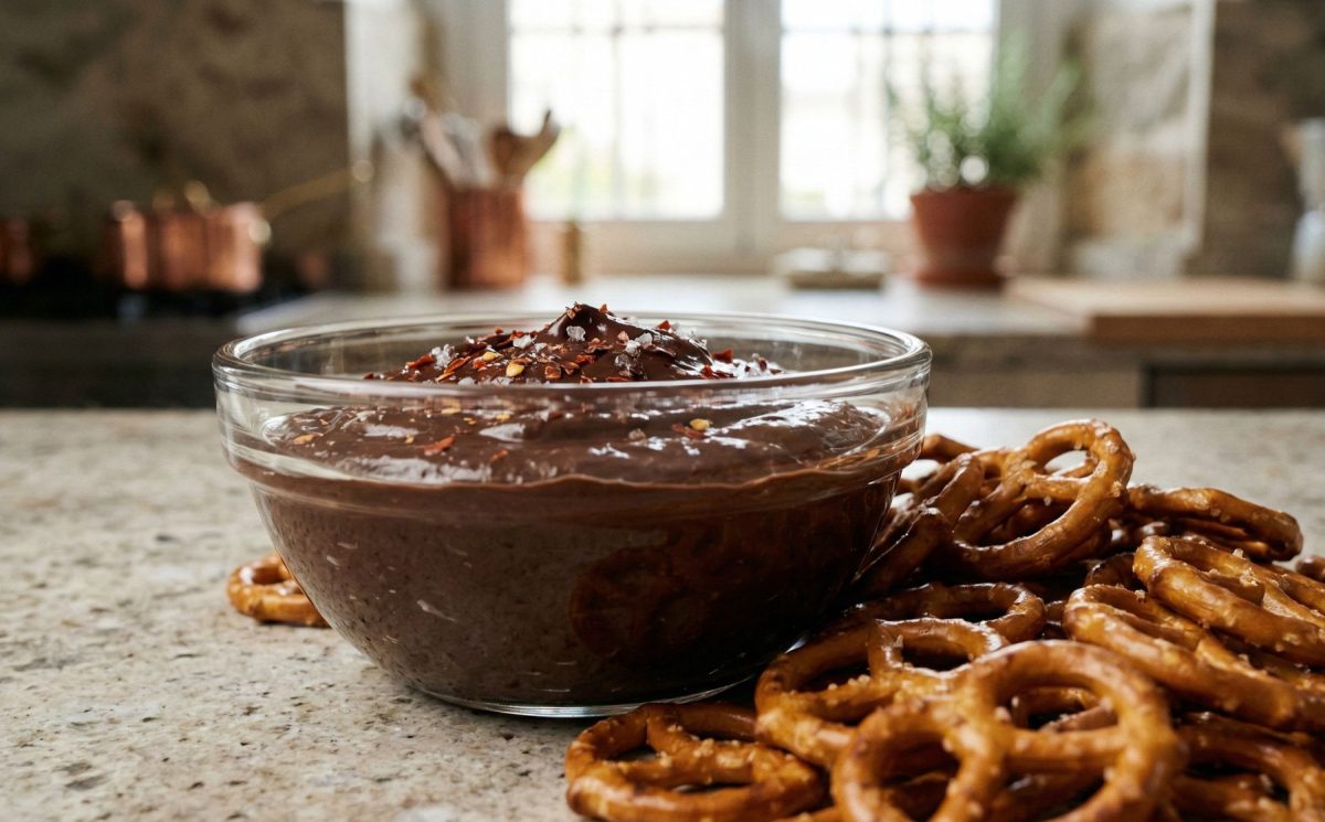Это просто взрыв для тех, кто любит агрессивные сочетания. Горячий, обжигающий горький шоколад, усиленный хлопьями перца чили, встречается с хрустящими, обильно посыпанными солью крендельками. Оторваться от этого макания невозможно: острота догоняет в самом конце, заставляя тянуться за следующим кусочком.