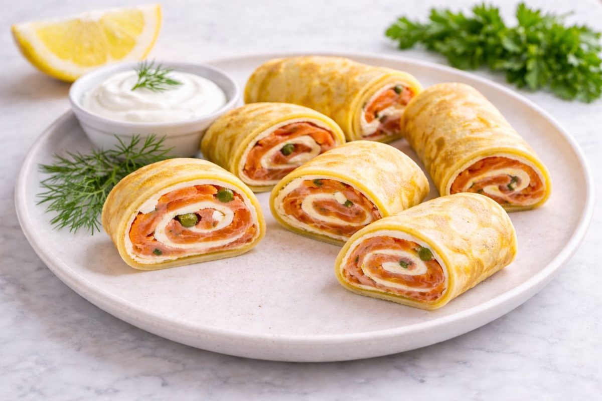 Как приготовить: Смажьте блин крем-сыром, посыпьте рубленым укропом и каперсами. Выложите ломтики рыбы. Лучше всего подавать в виде рулетиков, разрезанных поперек, как роллы.