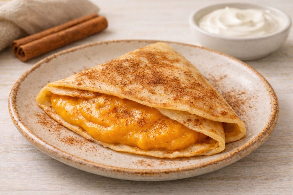 Игра контрастов: мягкое, теплое тесто блина и сухой, хрустящий попкорн внутри. Тягучая соленая карамель связывает всё вместе, создавая во рту ощущение настоящего кинотеатра. Главное — есть быстро, пока попкорн сохраняет свою воздушную текстуру.