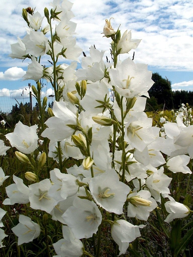 Карпатский и скученный колокольчики и синий и белый размножила семенами довольно легко.Так же сорт-«Свадебные колокола» (высота 50см, по форме ветки как гигантский ландыш ,а цветы темно-лиловые пузатые колокольчики).