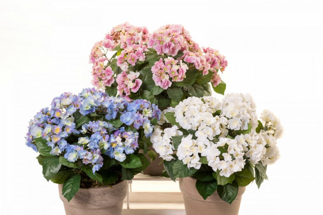 Цветение комнатных гортензий продолжается с февраля и до середины лета. Первые цветущие кусты в продаже появляются в конце зимы, причем обычно на прилавках представлены растения с уже полностью распустившимися соцветиями.