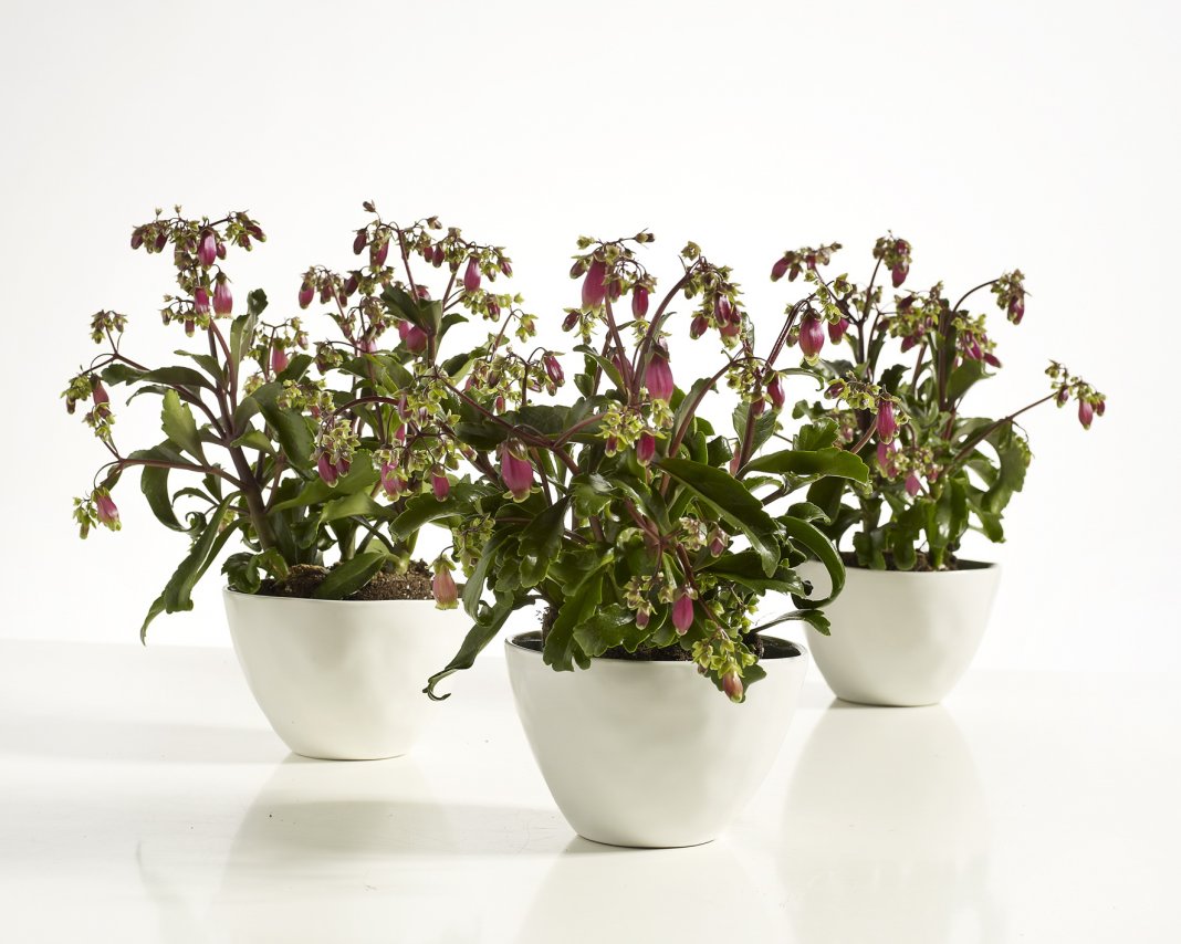 Окрас цветков бриофиллума никогда не бывает однотонным: светлое основание трубочек и яркий зев создают ощущение двухцветности. Цветовая гамма включает оранжевый, розовый и красный варианты. Это весеннецветущий вид суккулентов, радующий с февраля до мая.