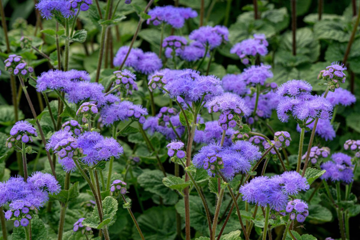 «Блю Минк» (Ageratum houstonianum ‘Blue Mink’) – компактный сорт с пушистыми голубыми соцветиями, высота до 25 см, очень декоративный, устойчивый, один из самых популярных.