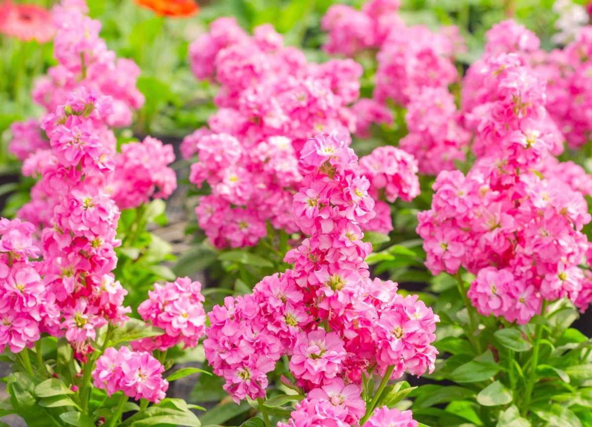 «Айрон» (Matthiola incana ‘Iron’) – серия высокорослых махровых левкоев с разнообразной окраской (белая, розовая, красная, фиолетовая), высота до 70 см, очень ароматные, прекрасно стоят в срезке.