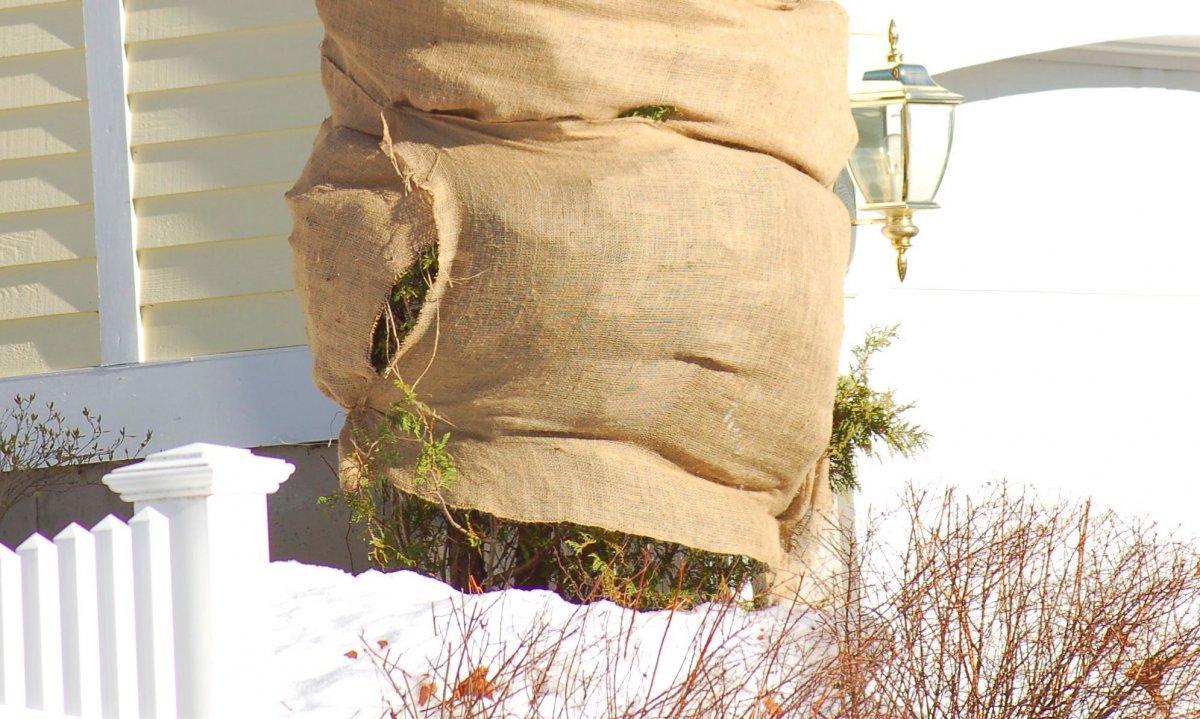 Молодые хвойные растения, которые растут на участке меньше трёх лет, необходимо укрыть от морозов. Лучший материал для утепления – мешковина, так как она хорошо пропускает воздух и надёжно защищает от мороза. Многие садоводы используют обычную марлю, обмотав ею растение в два слоя и закрепив шпагатом. Можно использовать агроволокно, но при условии, что будет возможность снять его ранней весной, иначе есть угроза выпревания.