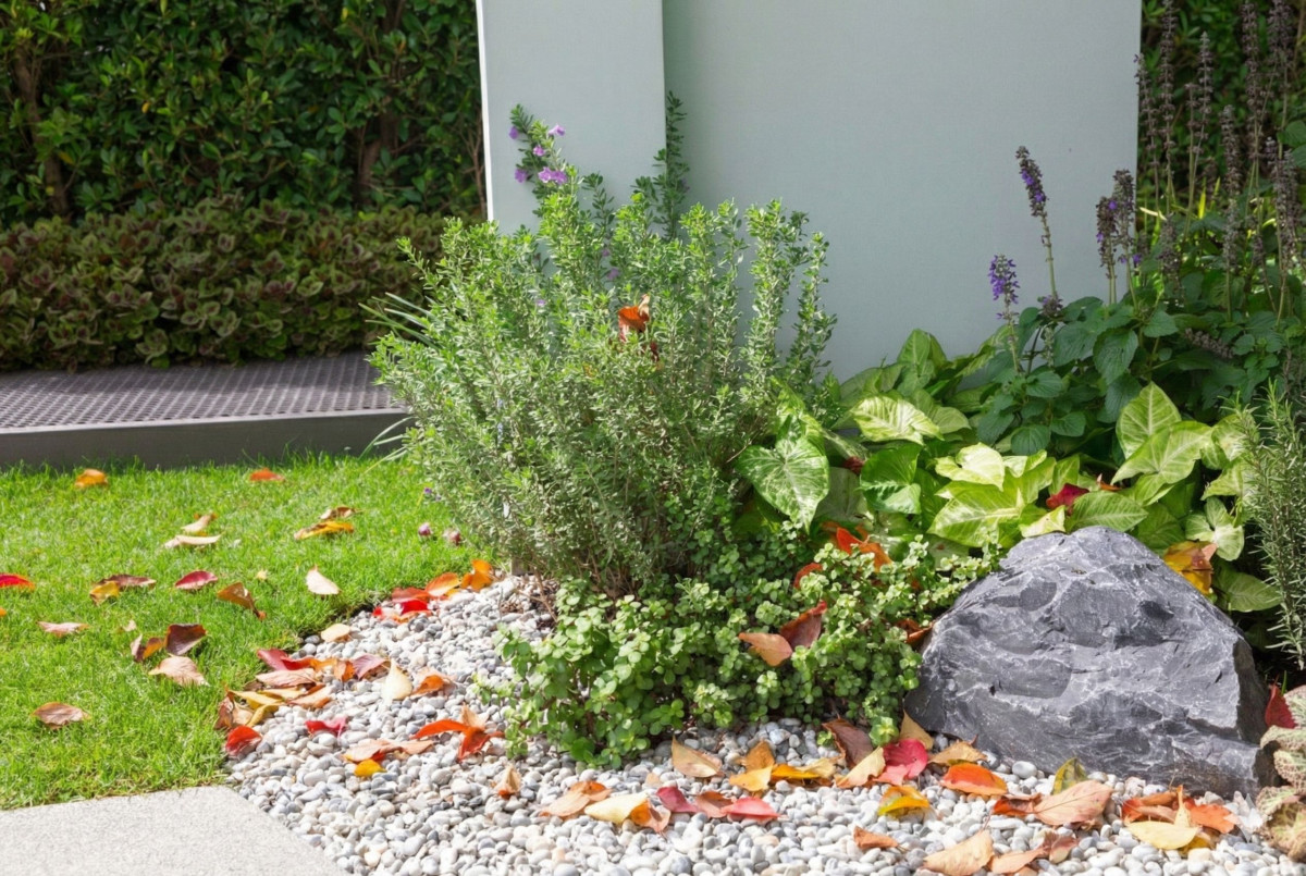 Каменистые клумбы и гравийные отсыпки выглядят стильно и современно. Камни, гравий, несколько акцентных растений — кажется, что уход минимальный. Не нужно поливать, полоть, рыхлить.