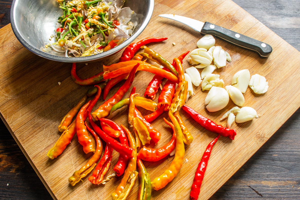 Для приготовления аджики советую взять острый перец чили и добавить к нему горький перец. Так можно слегка разбавить жгучесть.