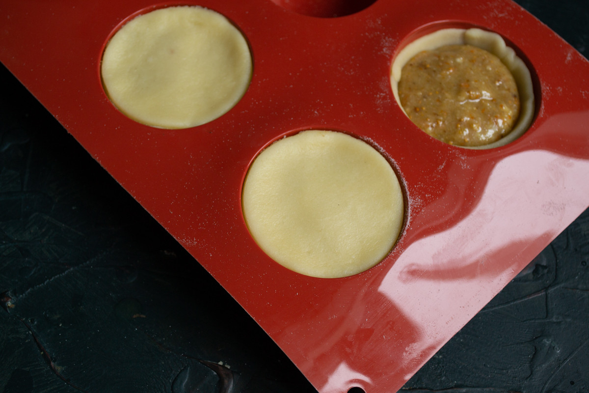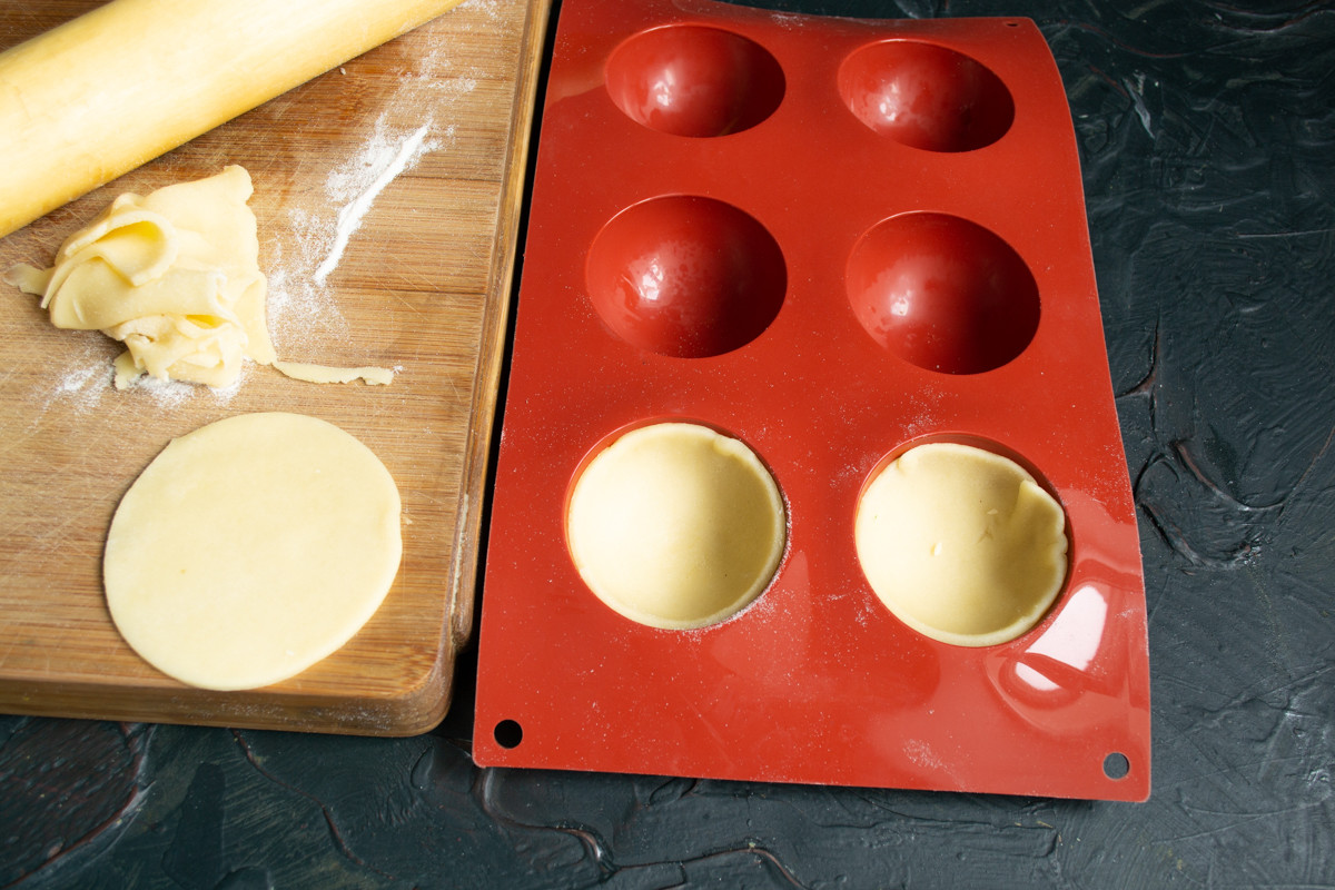 Выкладываем кружочки теста в формочки, аккуратно расправляем, убираем форму в холодильник.