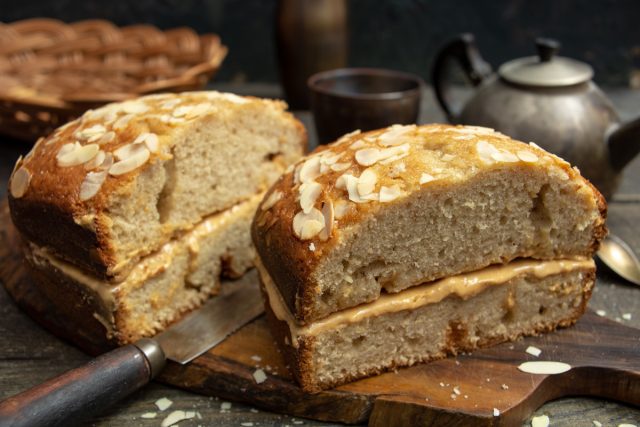 Наш банановый хлеб с арахисовой пастой готов, подаём к чаю или кофе. Приятного аппетита!