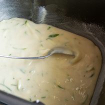 Вооружаемся блендером или мощным миксером и смешиваем жидкие ингредиенты несколько минут до однородного состояния, пока масса не превратится в нечто похожее на тесто для оладий или жидкий майонез.