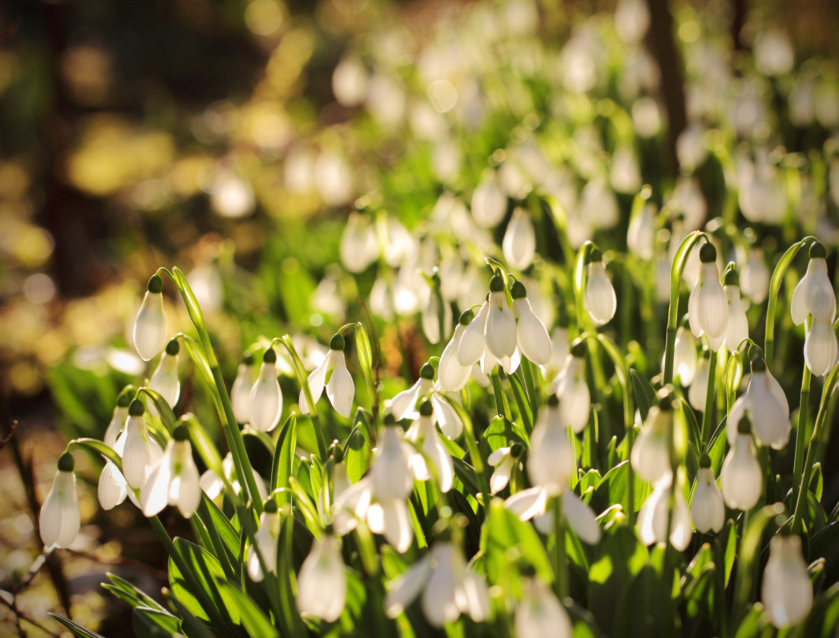 Плавно аккорды весенней капели подхватывают жизнерадостные и утонченные подснежники. Нередко изящные цветы возвышаются над снежным покровом. Стебель высотой до 15 см украшает белоснежный цветок вторящий форме капель с крыш. Подобно ковру они устилают пока еще голую почву. Выберите им в компаньоны хионодоксу, крокусы, весенник или адонис.