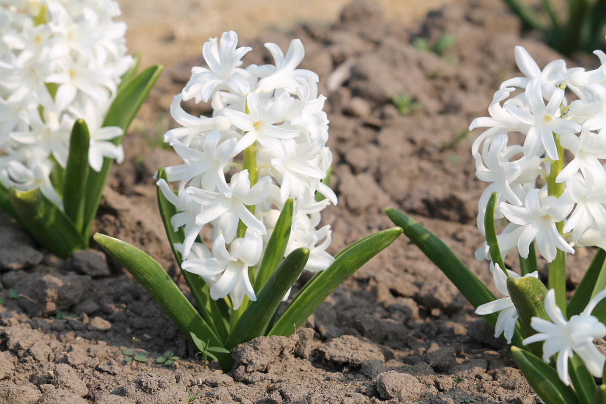 Сорта гиацинта «Карнеги» (Hyacinthus ‘Carnegie’) и Лувр (Hyacinthus ‘Louvre’) обладают приятным запахом и долгим цветением.