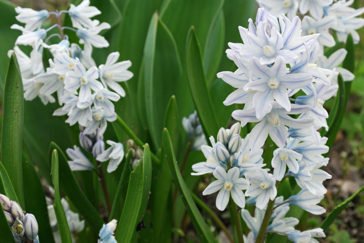 Садовая вариация хионодоксы Форбса «Альба» (Chionodoxa forbesii ‘Alba’) поразит снежно-белой окраской.