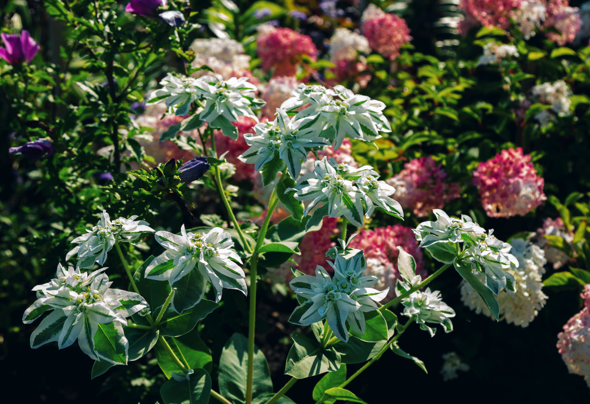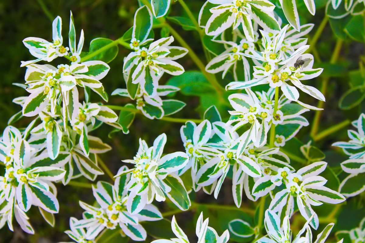 Это растение спустилось к нам с субтропических горных склонов Северной Америки. Да так полюбилось садоводам и ландшафтным дизайнерам, что те стали с удовольствием использовать его в создании цветочных композиций. Белые облачка молочая окаймленного могут раскрасить любую клумбу, стать отличным дополнением к растениям со скучноватыми расцветками, оживить невзрачный уголок сада.