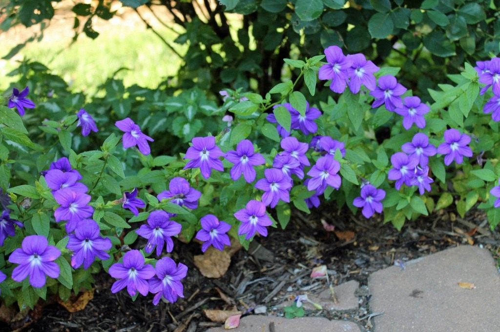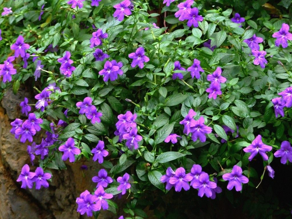 Броваллия красивая (Browallia speciosa) — вступая в цветение с середины лета и длящееся до самых заморозков, Броваллия красивая обильно усыпана небольшими, до 5 см диаметром цветками. Голубые, лиловые, синие, фиолетовые и темно-пурпурные, иногда белые, нередко с белым глазком в центре или светлее окрашенные снаружи, чем внутри, обильно покрывают кустик так, что под ними почти не видно слегка опушенных с тонкими кончиками листьев, образуя раскидистые сферы в диаметре до 60 см.