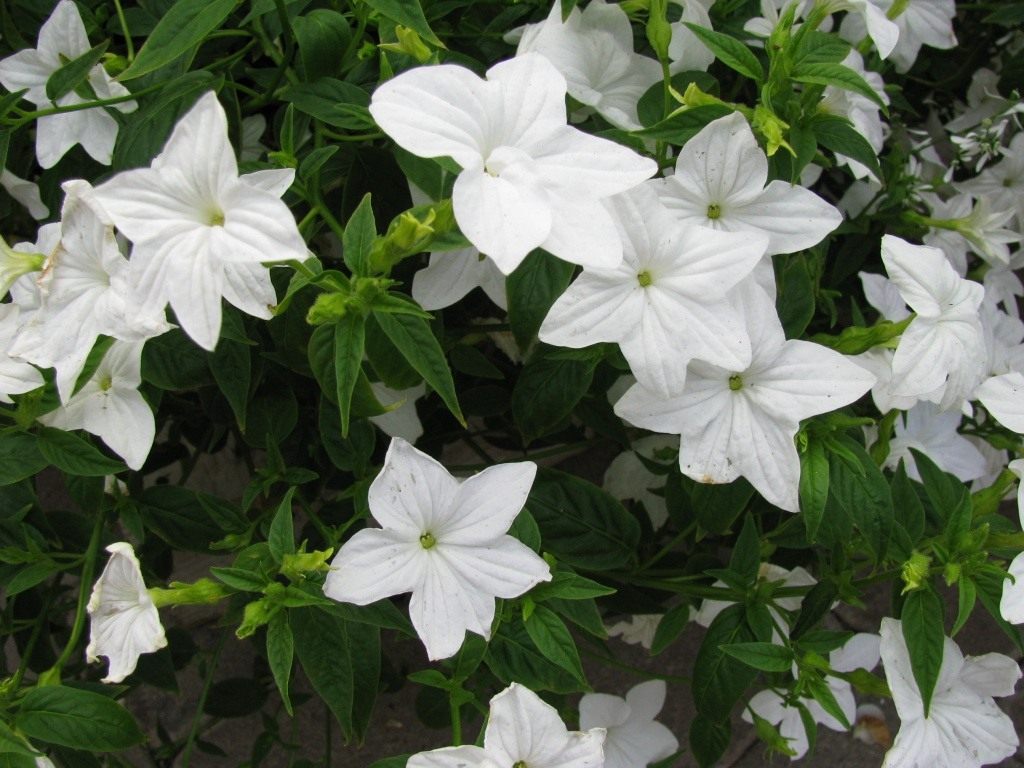 Броваллия американская (Browallia Americana) выпускает мелкие цветки, но в таком количестве, что они легко закрывают собой зелень куста. Всего около 2 см в диаметре, белые или лилово-голубые цветки изобильно укрывают компактные плотные кустики. Внешне эту красавицу легко спутать с броваллией липкой, но у нее побеги не клейкие, а зелень — несколько темнее.