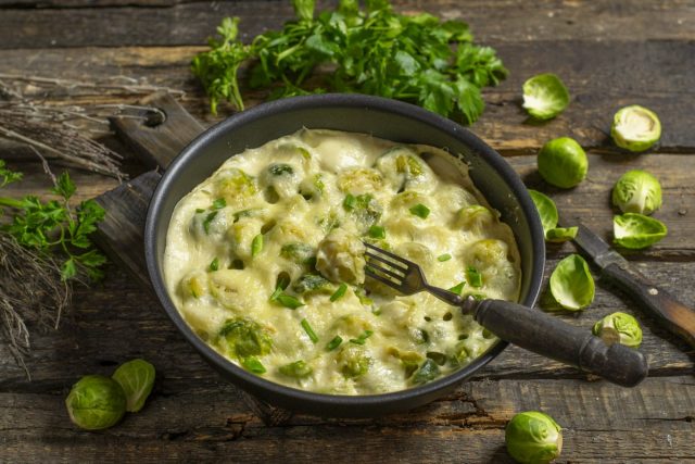 Способ приготовления брюссельской капусты в сливочном соусе под сырной корочкой