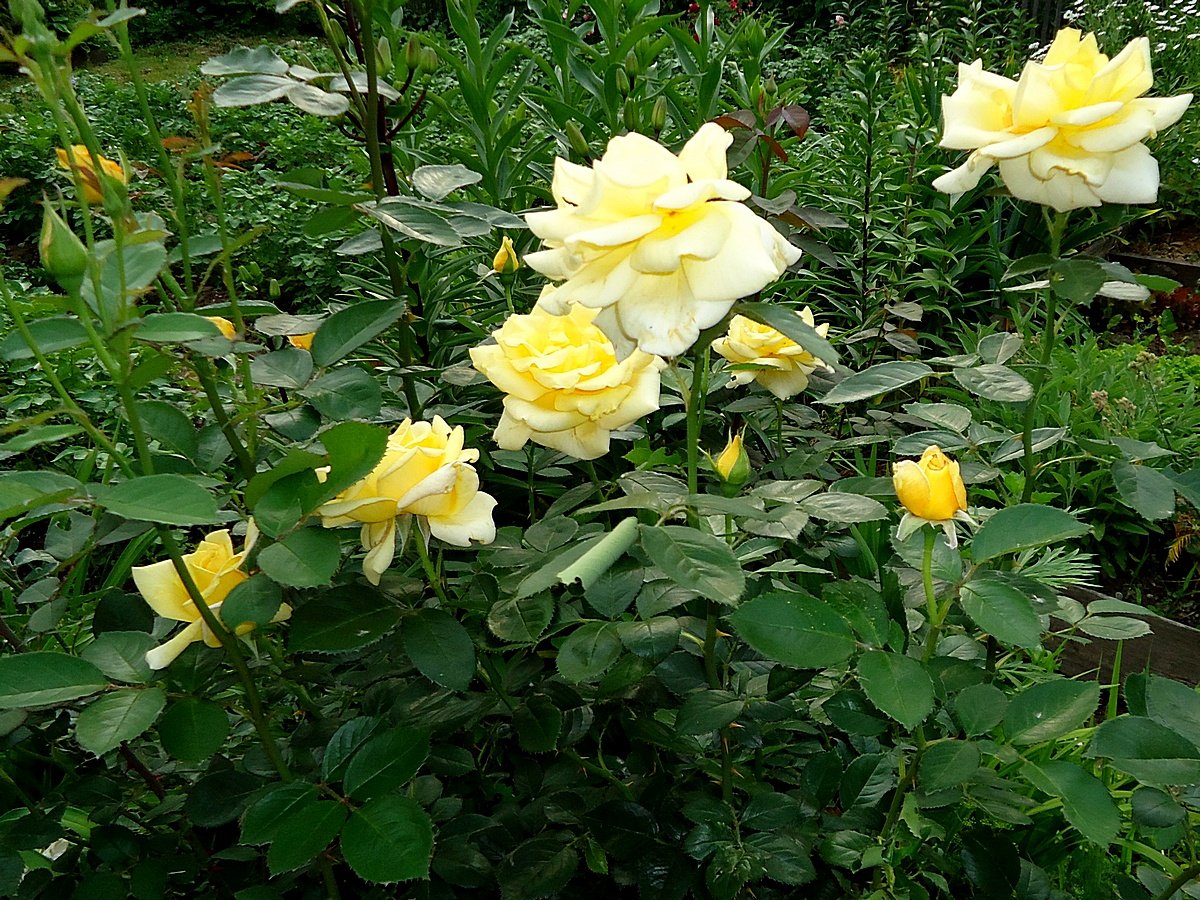 Жёлтые розы не особенно люблю, но пересортом ко мне некоторые-таки попали. «Беролина» (Berolina) — очень достойная роза, классическая чайно-гибридная. Классический бутон, восковые лепестки, не боящиеся ни дождя, ни солнца, цветки в красивом не выгорающем состоянии держатся долго и чисто облетают. Тёмная здоровая глянцевая листва. Один цветок на толстом стебле, но стеблей отращивает много и цветы распускаются всё лето. В Хабаровском крае она жила на теплотрассе. Длинноногая, до 1,8 м, но хорошо облиственная. В Подмосковье вполне устойчива. Спасибо тому, кто что-то перепутал в моём заказе.