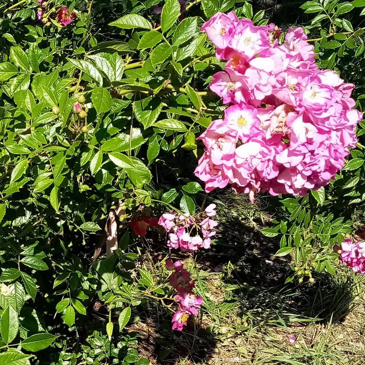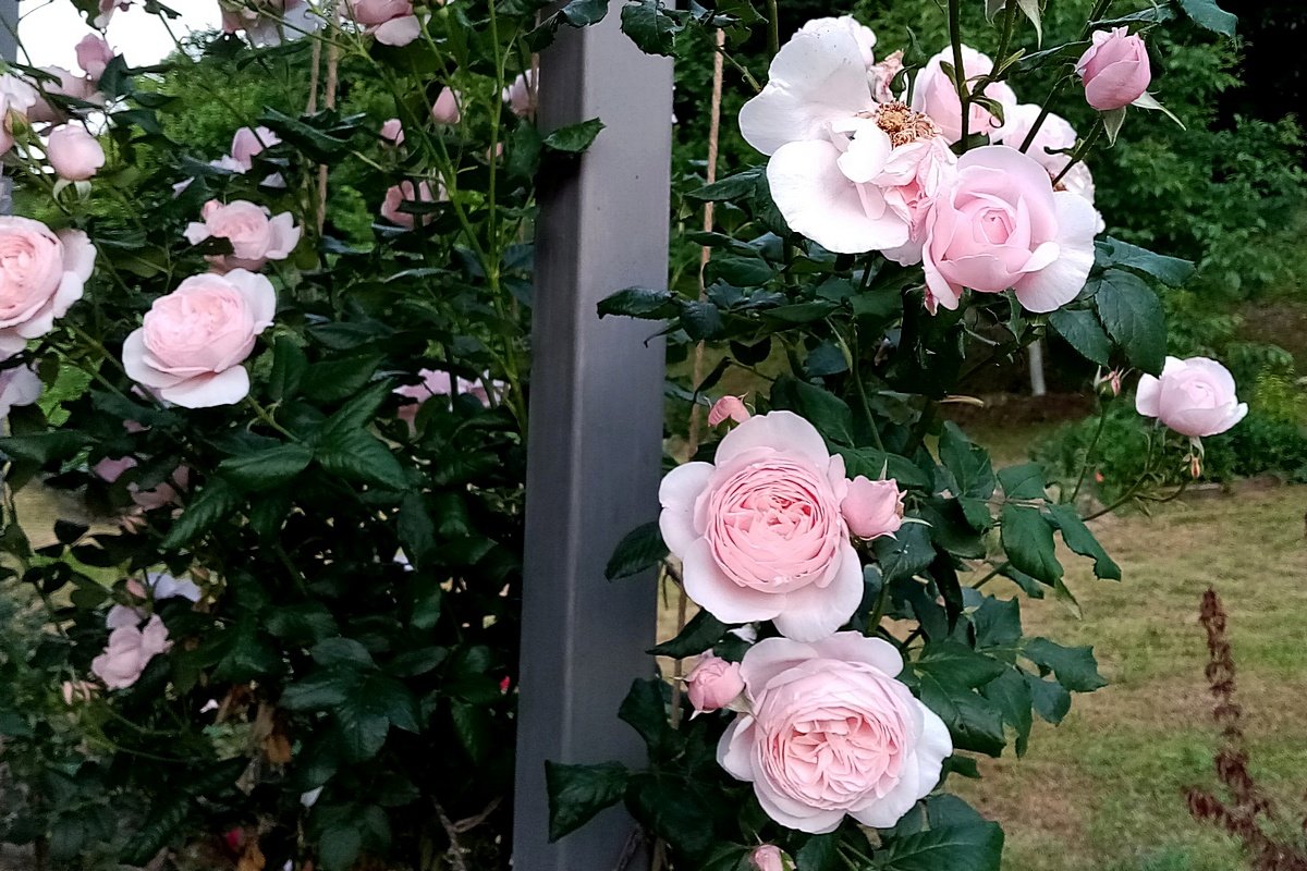 Неоднозначную «Мадам Исаак Перейро» (Madame Isaac Pereire) рискнула посадить только на Кубани. Реально неоднозначное растение. Первое июньское цветение — листьев не видно и упоительный аромат на все окрестности. Невероятно колючая и буйнорастущая: за сезон при короткой обрезке занимает в расправленном по забору состоянии 2х3 метра. Осенью цветёт повторно (чуть менее буйно). Единственная из моих роз — поражается грибками и объедается гусеницами. Сидящие рядом «Мадам Бовари» (Madame Bovary) и «Астрид Графин фон Харденберг» (Astrid Grafin von Hardenberg) при этом стоят чистенькие, и гусениц на них не видно.