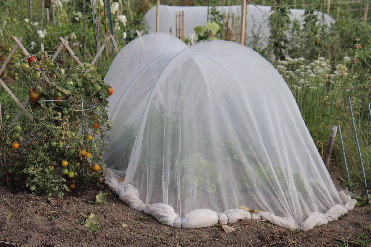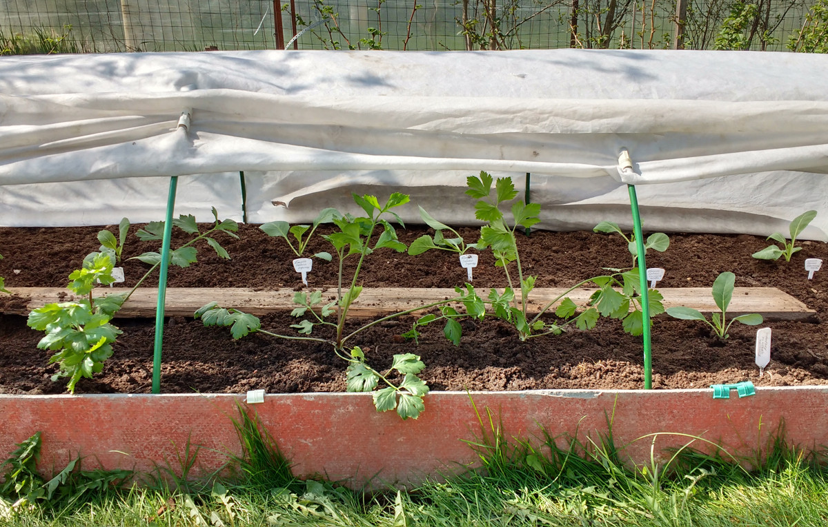 Парниками на дугах или рейках можно накрыть целиком овощную грядку или цветочную клумбу. Это удобно, когда надо защитить сразу много близко растущих растений. Тыквенные культуры теплолюбивы, но листья на ярком солнце мгновенно приувядают. Для рассады это стресс. Садовая ткань хорошо пропускает свет, сохраняет тепло, а в солнечный день притеняет растения. Такая защита необходима молодым, еще не освоившимся на свежем воздухе растениям.