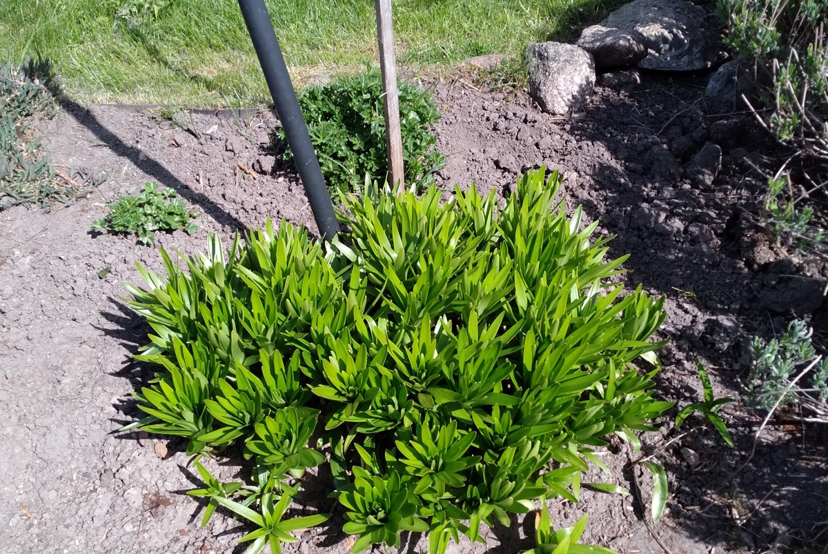 После цветения листва нарциссов живет долго, до середины июля. Их густая и постепенно увядающая шевелюра мешает расти другим цветам, занимает место на клумбе. Я заранее собираю листья нарциссов в сетку, закрепив ее по периметру в земле штырями. Затем без опасений подсаживаю рядом рассаду других цветов.