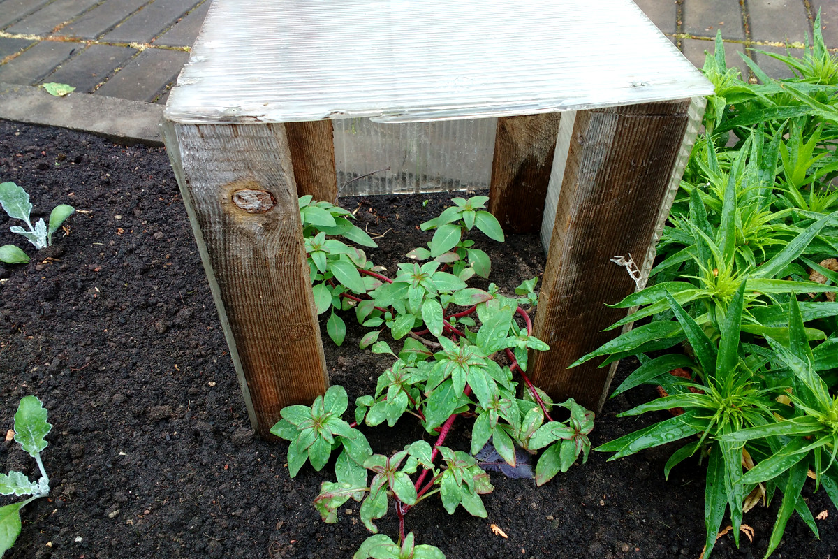 Хлам в виде поломанных контейнеров тоже может послужить на пользу садовым растениям. Оградит от порывов ветра и защитит от низких температур. Большой контейнер укроет от ненастной погоды сразу группу растений.