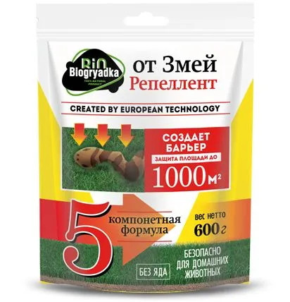 Вот почему вам подойдет биологический отпугиватель «БиоГрядка от Змей» производства компании «КемиПро». Это препарат, в основе которого лежит смесь эфирных масел. Она подобрана так, чтобы раздражать чувствительные обонятельные рецепторы змеи и отпугивать их.