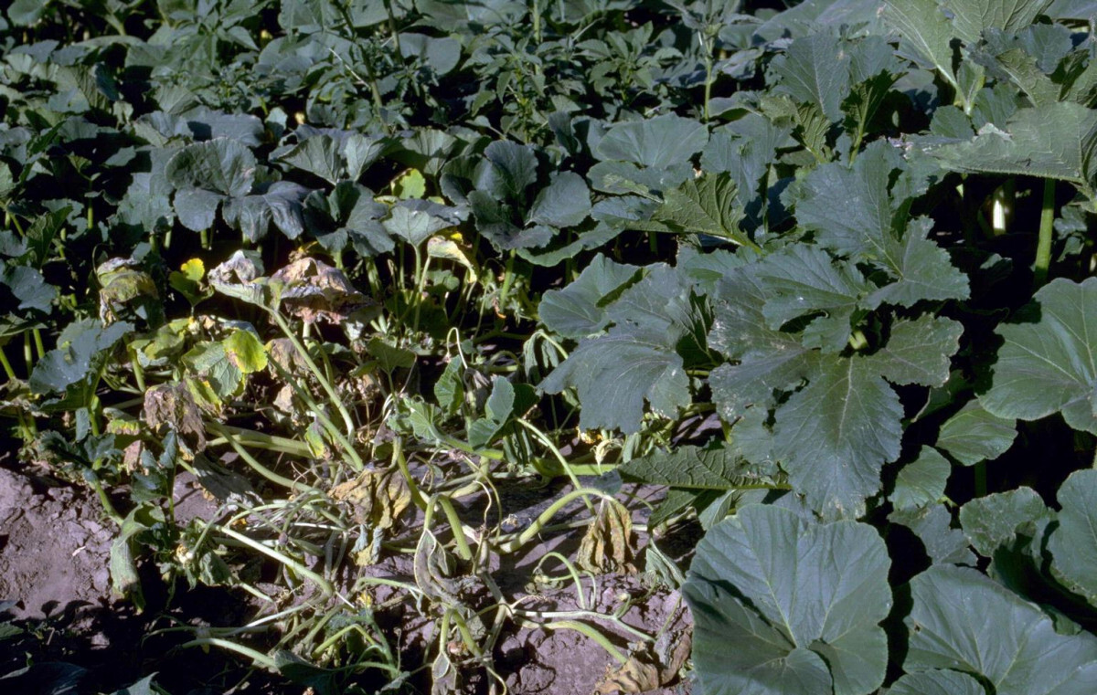Бактериальное увядание (Erwinia tracheiphila) вызывает проблемы с сосудами у растения и приводит к потере тургора листьев. Хороший совет — проверить утром, когда растения наиболее свежи. Если ваши кабачки уже вянут в это время, велика вероятность, что это бактериальное увядание.