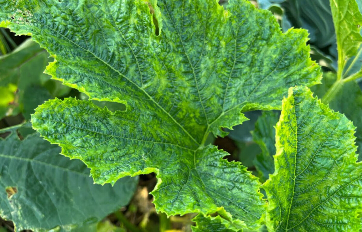 Вирус мозаики кабачков проявляется по-разному. Листья могут иметь желтый мозаичный рисунок, быть маленькими или деформированными. Также листва и плоды некротизируются. Если растение заболело, вылечить его невозможно. Рано или поздно куст погибнет, и вы можете потерять весь урожай. Удалите больные экземпляры, чтобы предотвратить распространение.